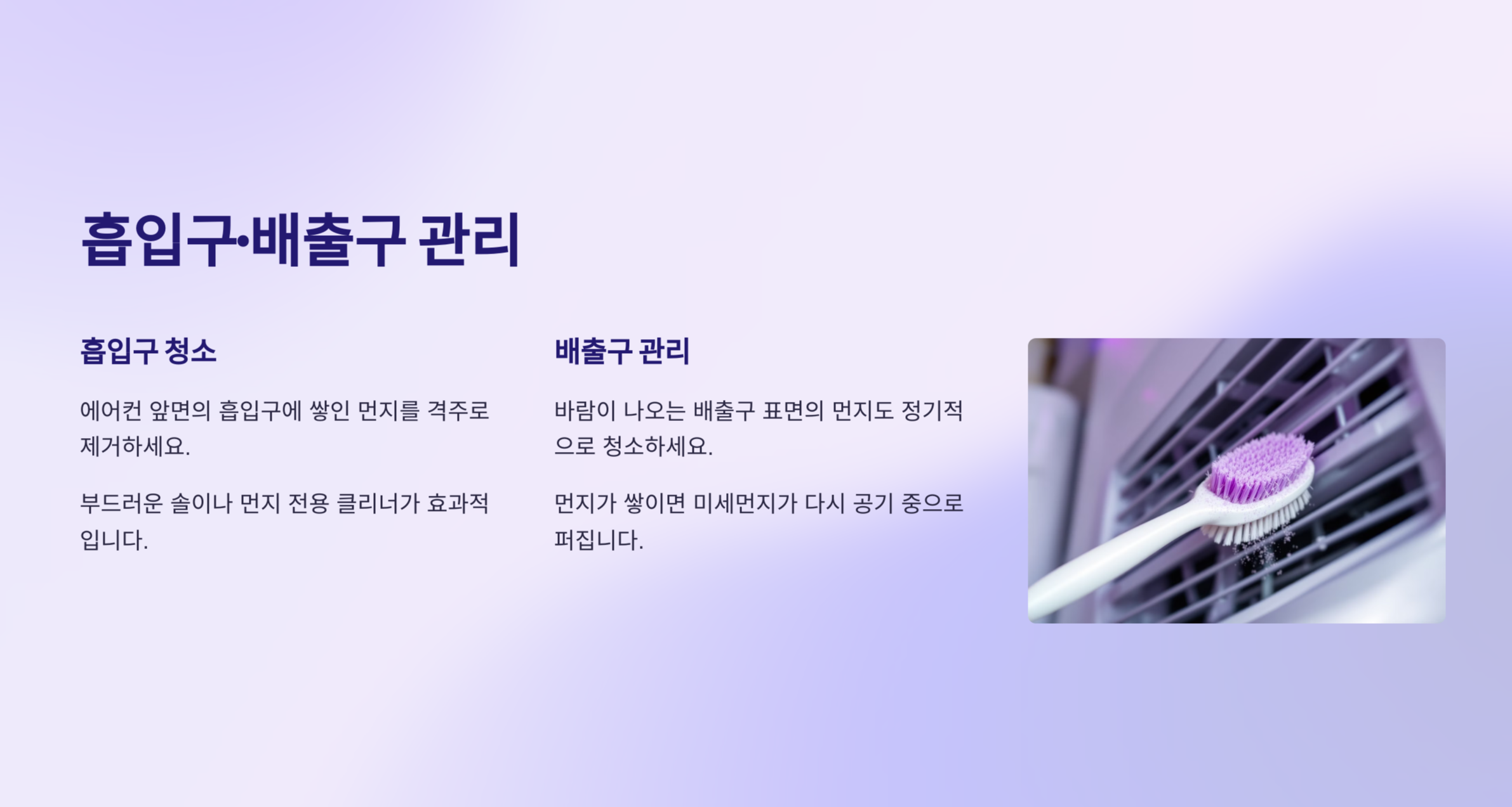 2. 흡입구·배출구 주변 먼지 제거 (격주)