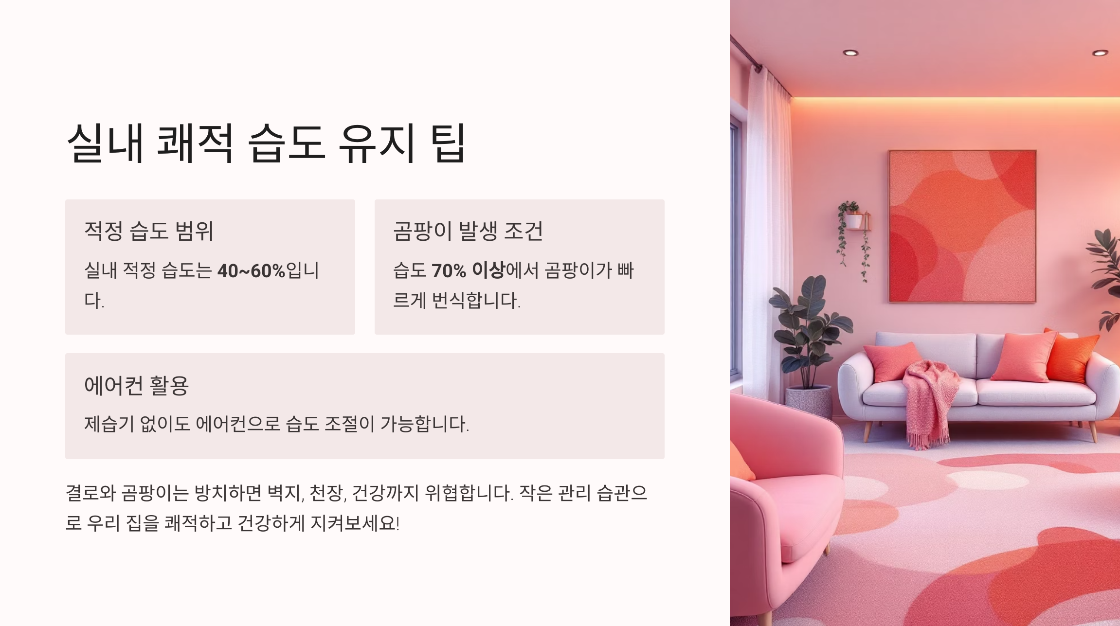 - 필요시 **습도계 설치**로 40~60% 유지 상태 체크