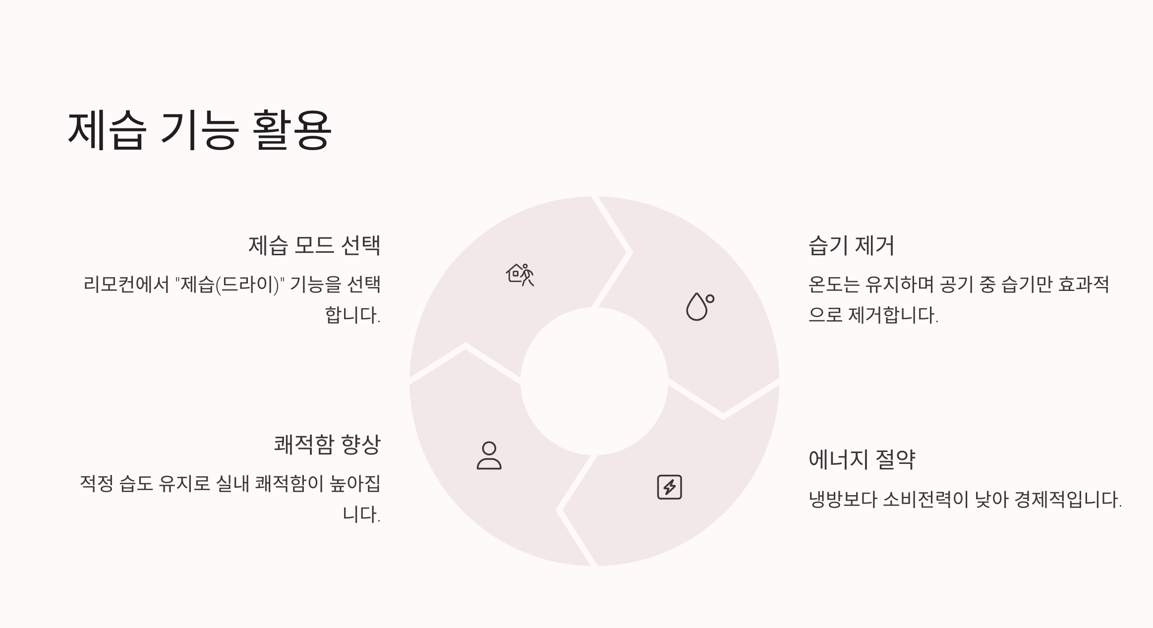 - 온도는 낮추지 않고 공기 중 습기만 제거