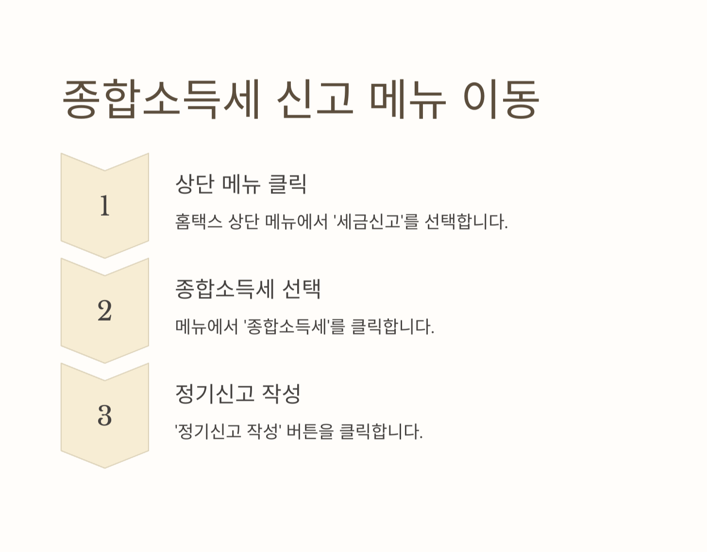 - 상단 메뉴 → [세금신고] → [종합소득세]
